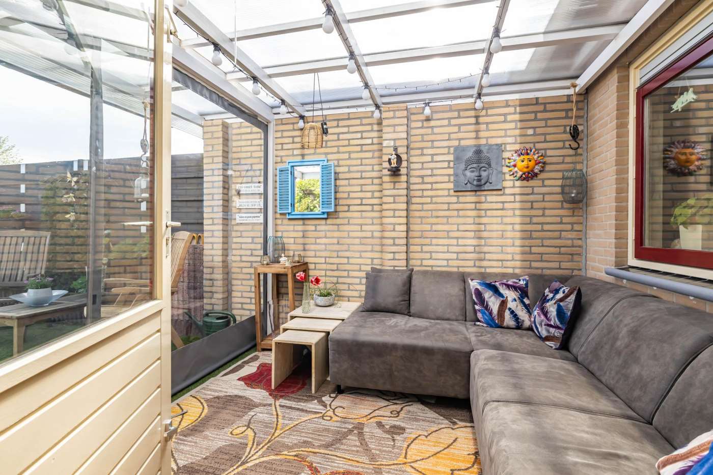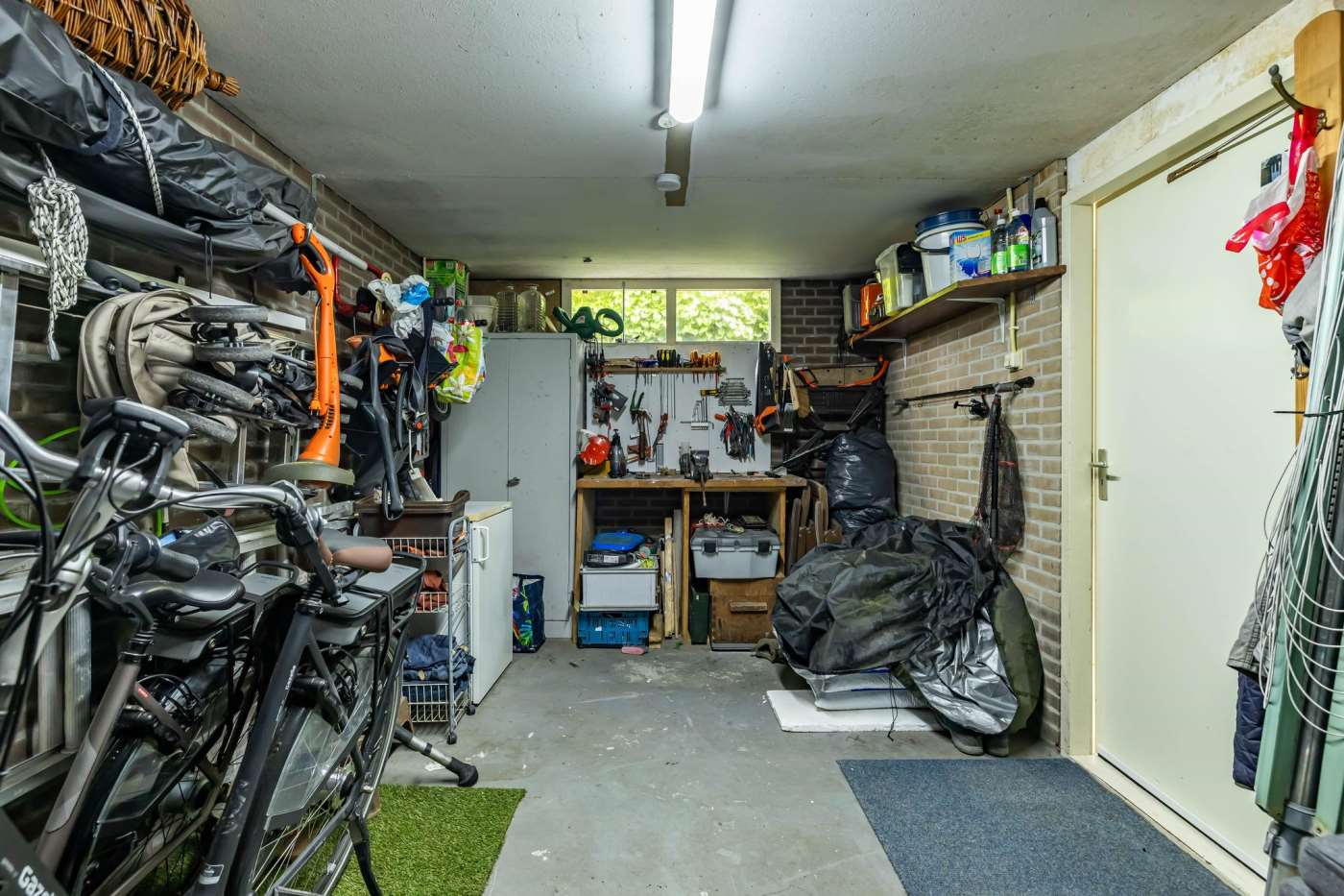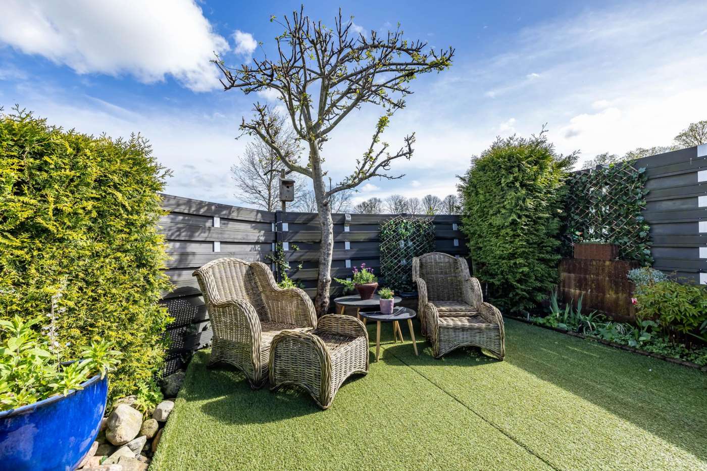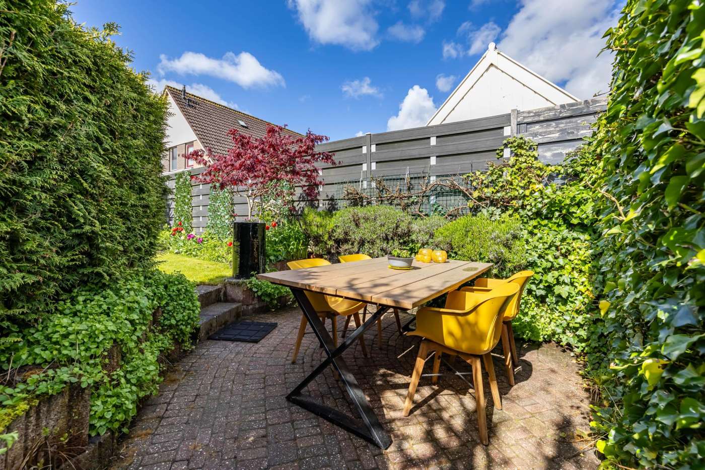Tuin; de besloten achtertuin kan worden bereikt vanuit de bijkeuken, alweer je direct onder de aan de woning gebouwde overkapping uitkomt. Deze overkapping zou je in de nieuwe situatie bij de woning kunnen laten trekken, waardoor er een grote woonkeuken ontstaat. Ook bestaat de mogelijkheid de keuken naar de voorzijde van de woning te verplaatsen waardoor je een mooie tuingerichte woonkamer kunt creëren.