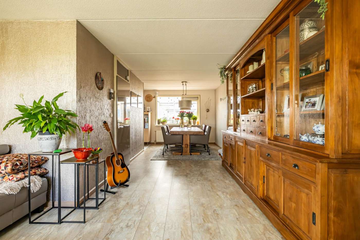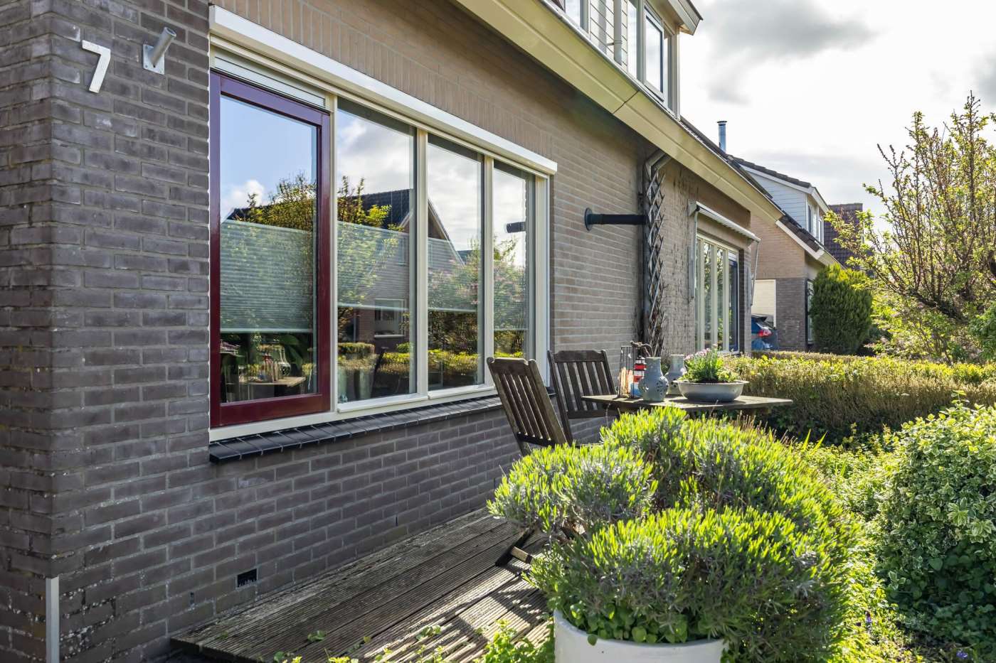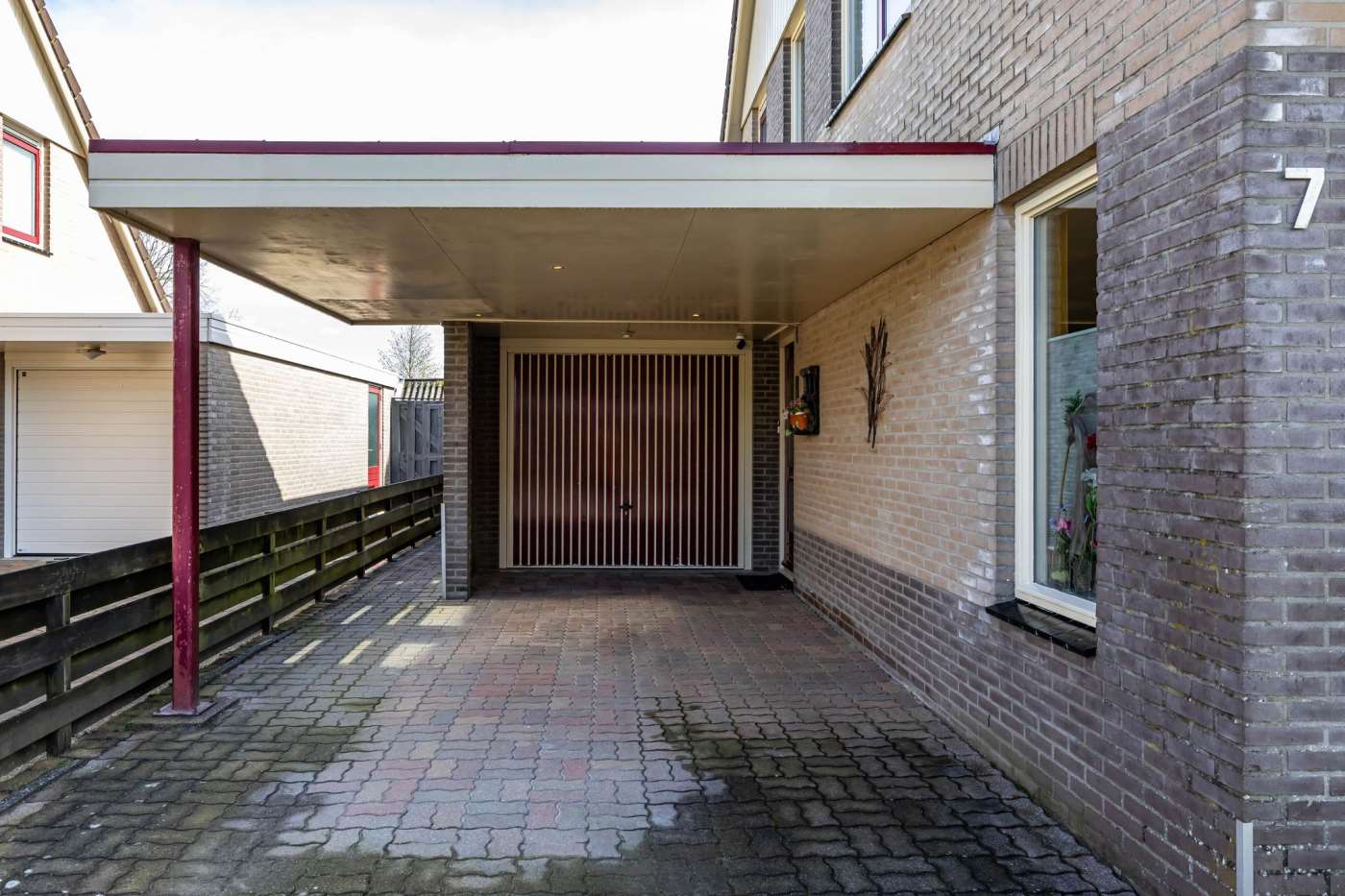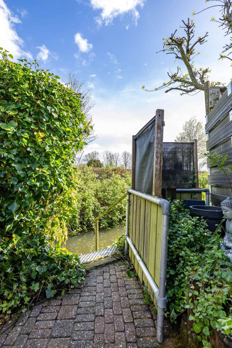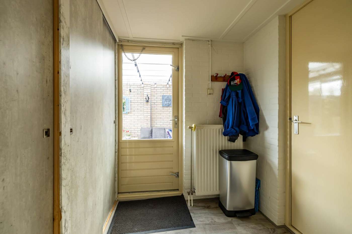 Tuin; de besloten achtertuin kan worden bereikt vanuit de bijkeuken, alweer je direct onder de aan de woning gebouwde overkapping uitkomt. Deze overkapping zou je in de nieuwe situatie bij de woning kunnen laten trekken, waardoor er een grote woonkeuken ontstaat. Ook bestaat de mogelijkheid de keuken naar de voorzijde van de woning te verplaatsen waardoor je een mooie tuingerichte woonkamer kunt creëren.