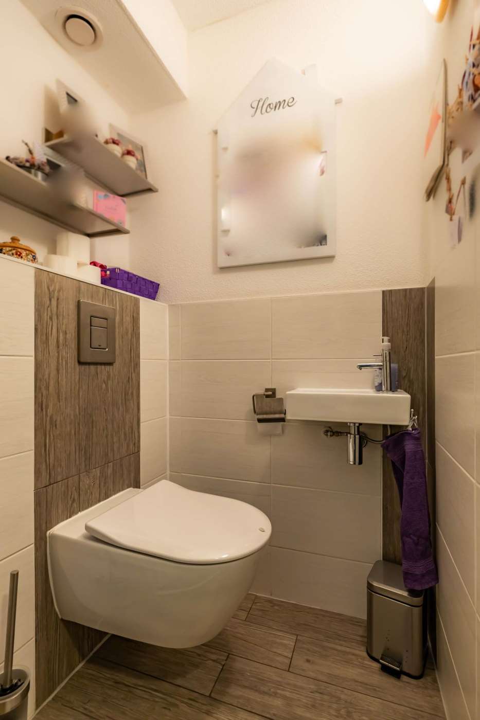 Entree; hal, modern toilet, meterkast, trapopgang naar 1e verdieping.
