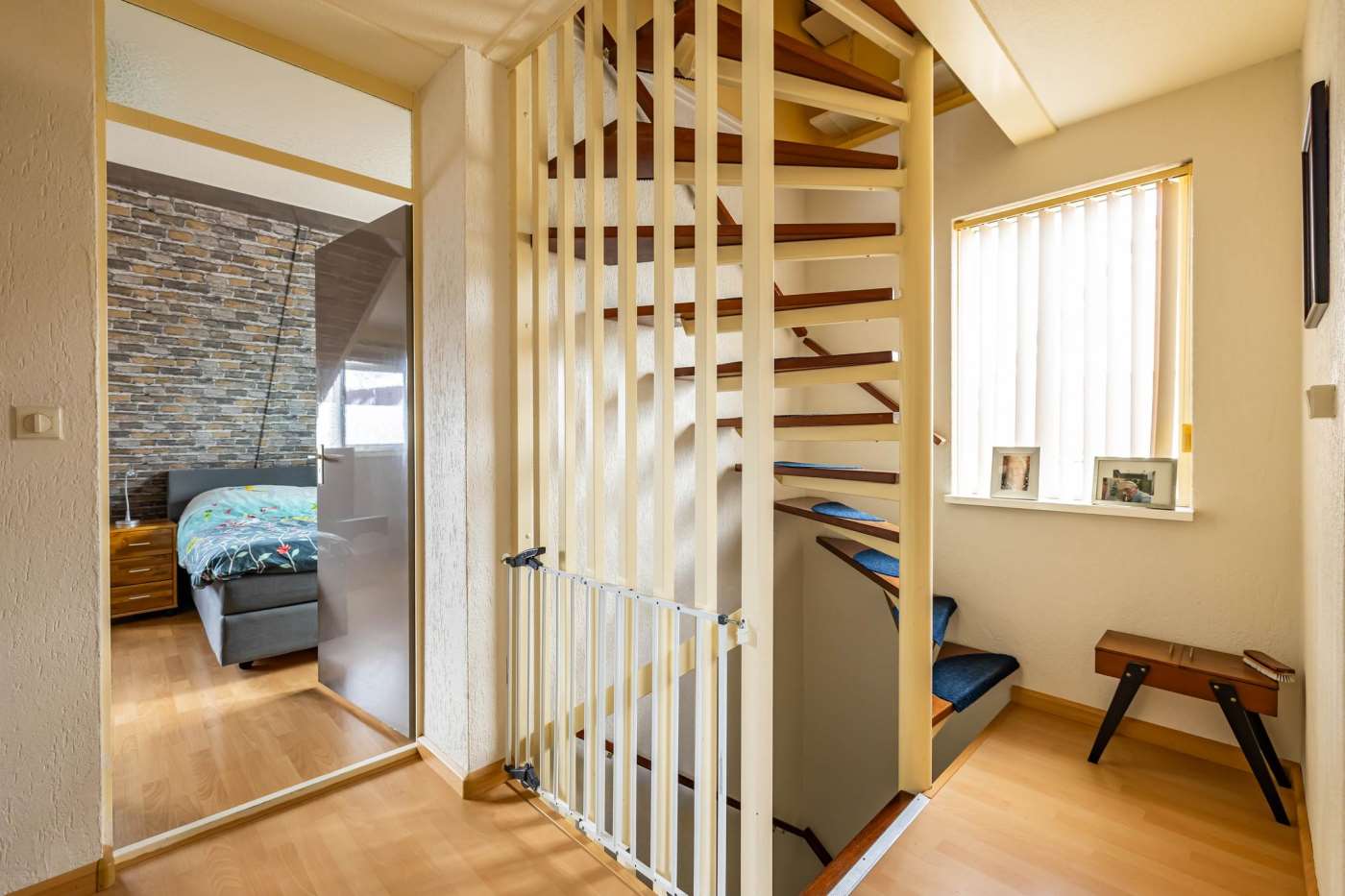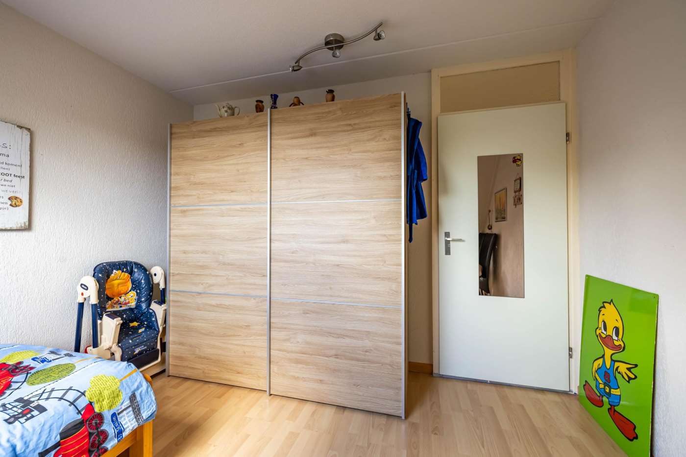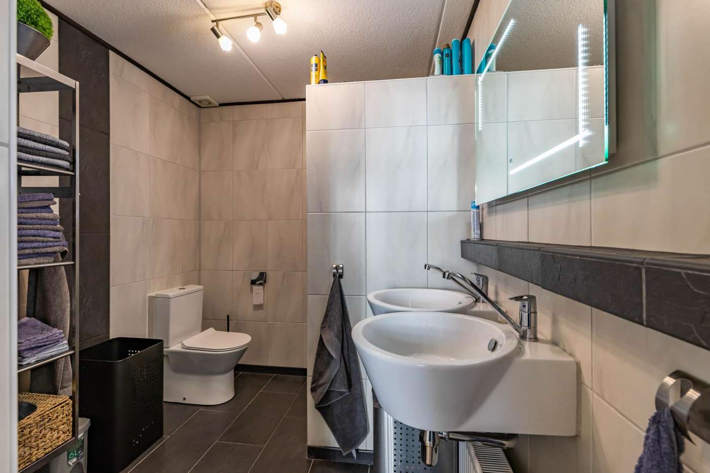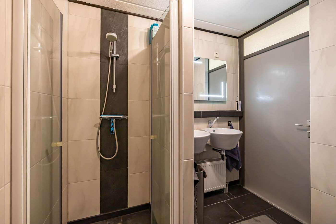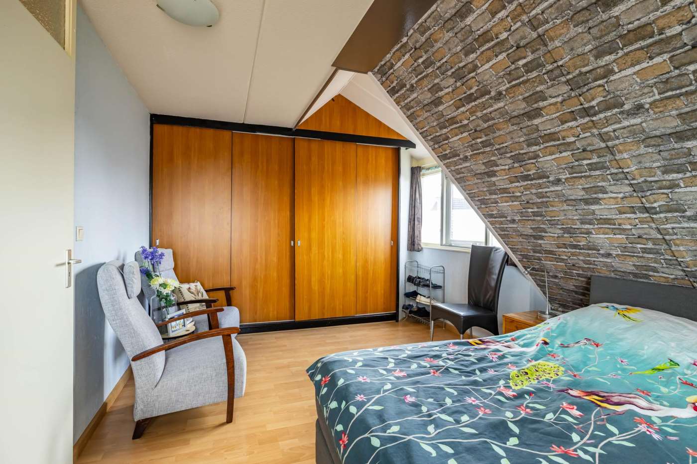 1e verdieping; overloop (laminaat) met toegang tot 3 slaapkamers (ca. 6m², 9m² en 17m²) waarvan de masterbedroom is voorzien van een dakkapel en vaste kastenwand, badkamer (v.v. dubbele wastafel, inloopdouche en 2e toilet) en trapopgang naar zolderverdieping.