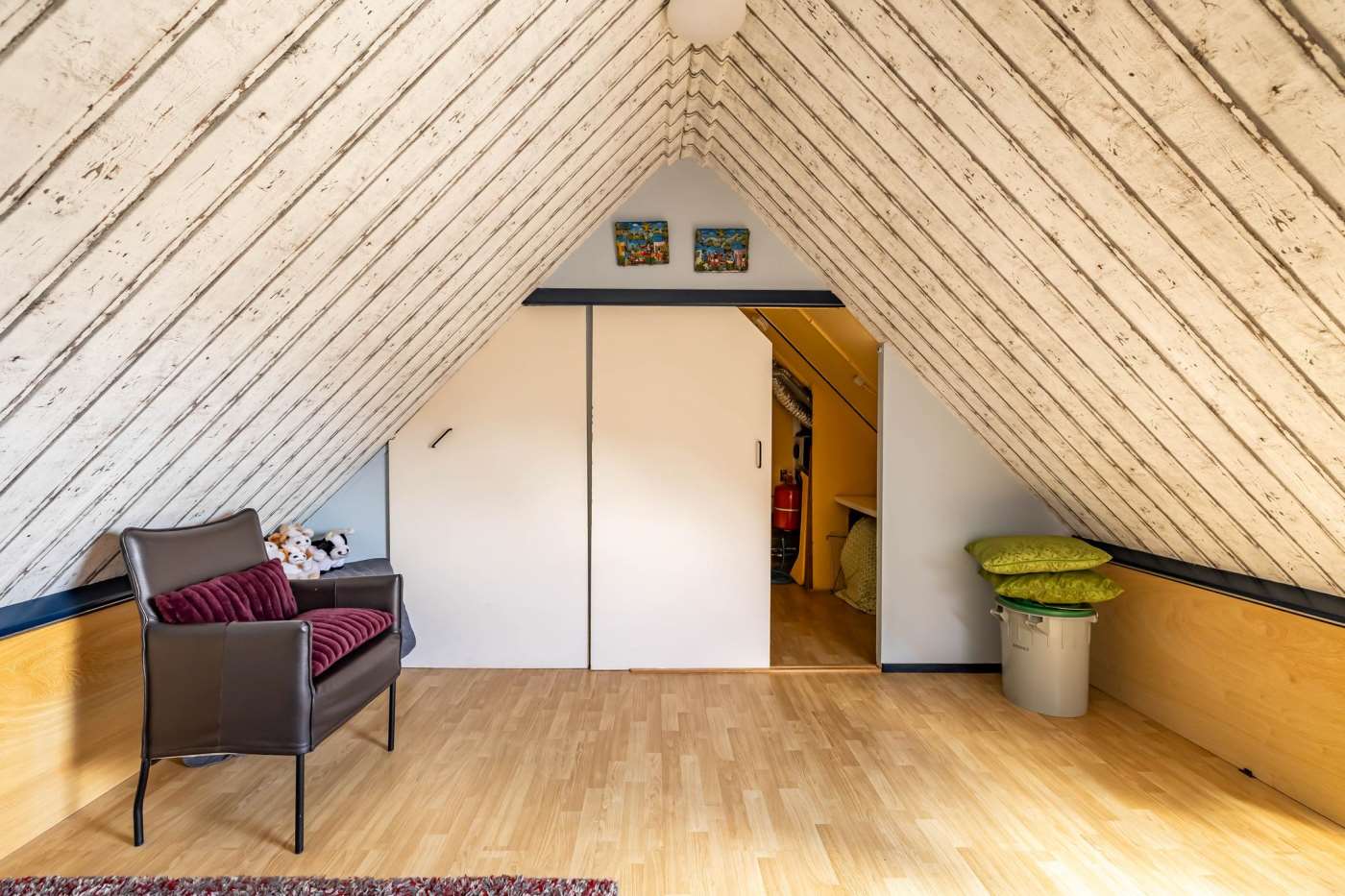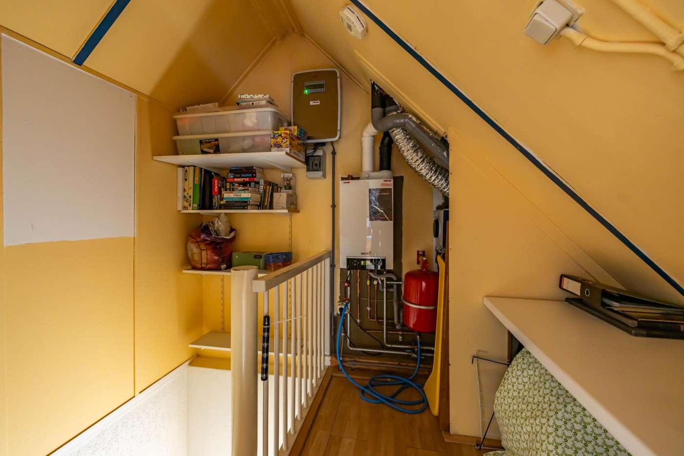 Zolderverdieping; Overloop (laminaat) met cv-opstelling (Nefit Proline 2011, eigendom), zolderkamer (ca. 9m²).