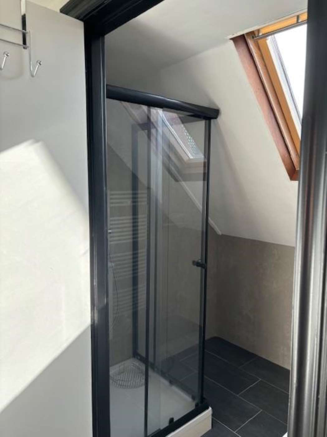 • Badkamer met douche, wastafel en eigen toilet;